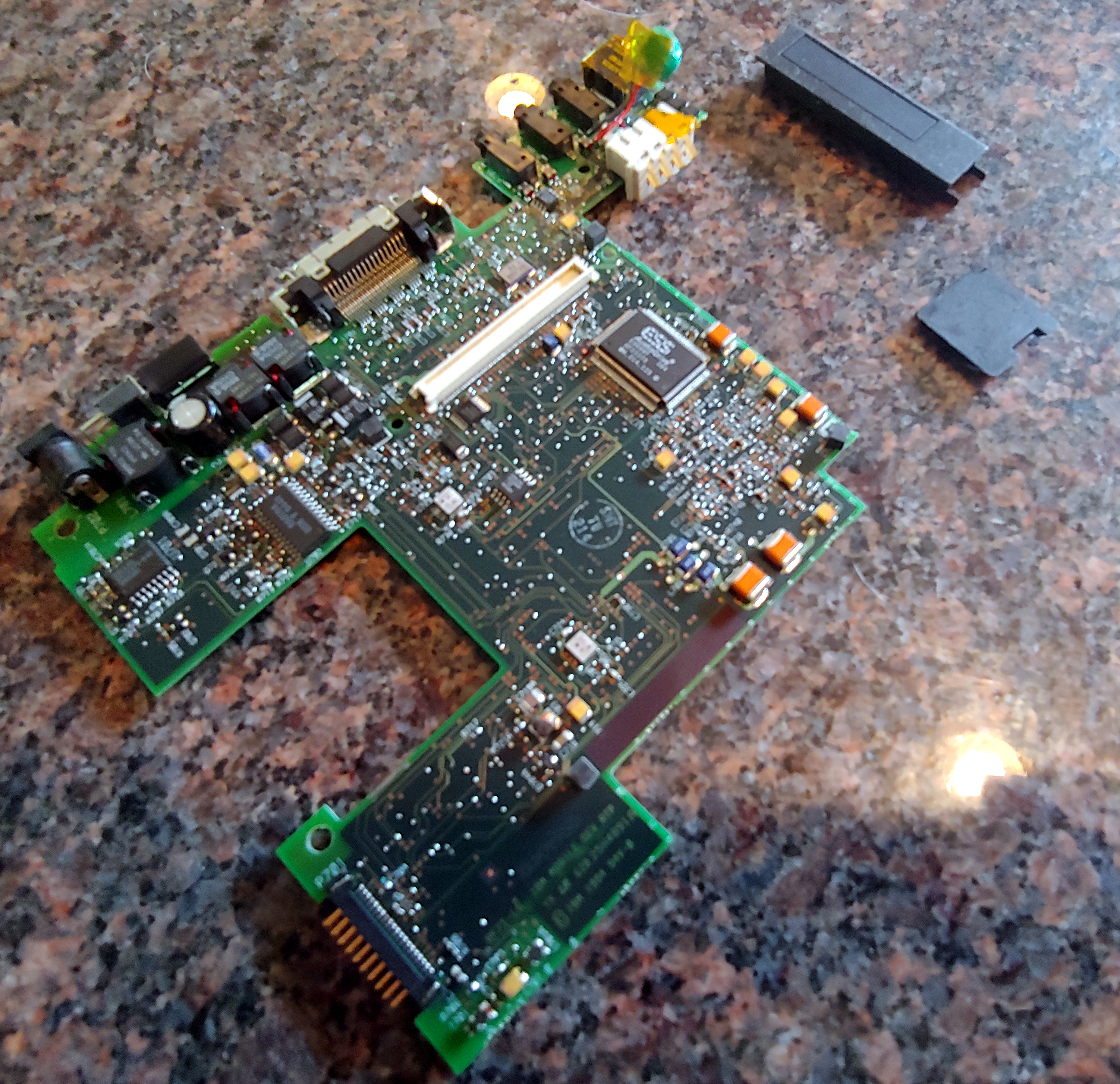 From upper left clockwise: display housing back, upper planar, mainboard, keyboard, sound.modem board, memory, rubber floppy port cover, hinge cover, infrared cover, memory cover, lower case. I also have a couple inverter boards. Also have a couple screen cables. These are examples and I have at least a couple of each of these parts and many more of some. I do not have any working screens (a couple bad ones) and no hard drive caddies.