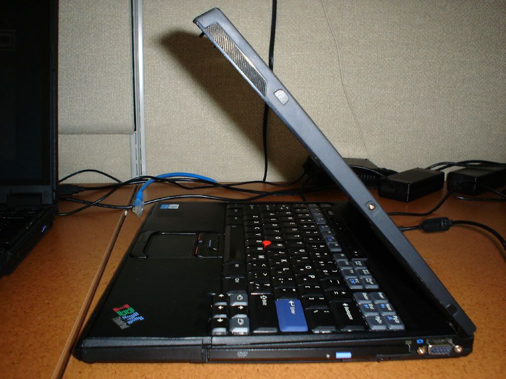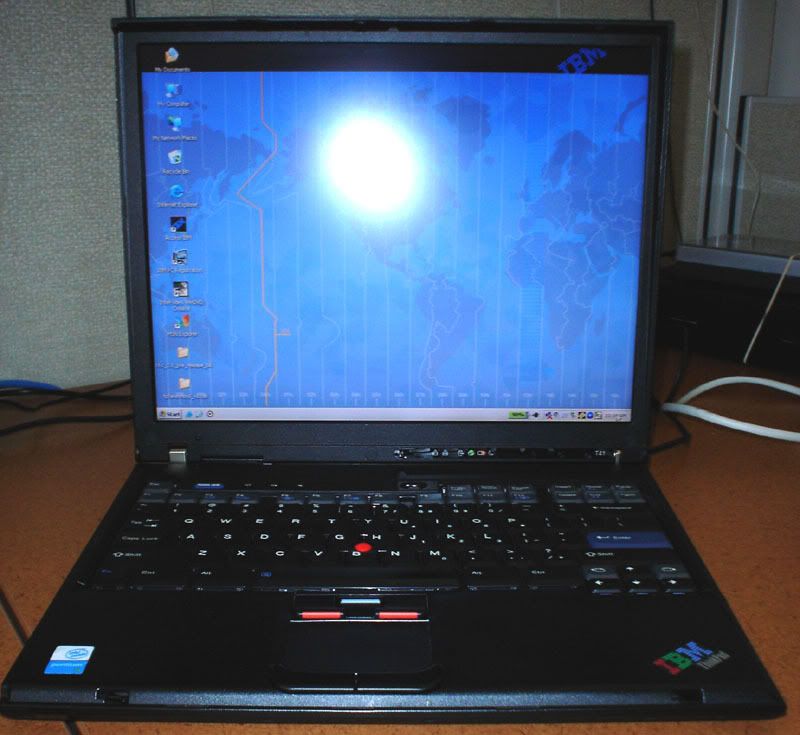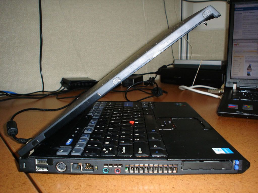 Up for sale is a Thinkpad T41 in good cosmetic condition. The keyboard almost looks brand new. The rest of the machine looks very good, except for a 1-cm crack in the LCD bezel which has been "repaired" with Krazy Glue (see the photos below). The XGA display is in excellent condition, except for a red dead pixel. The type/model is 2373-8RU with the following specs: