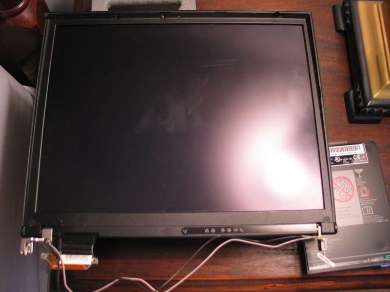 This was recently removed from the T40 listed in my signature. There is some damage to the screen (evidenced by indentation on cover), which resulted in the appearance of a white pressure point on the screen. It is noticeable, but the screen still works fine. I'm sorry I don't have any pictures of the screen turned on, displaying the blemish. Here's all I have: