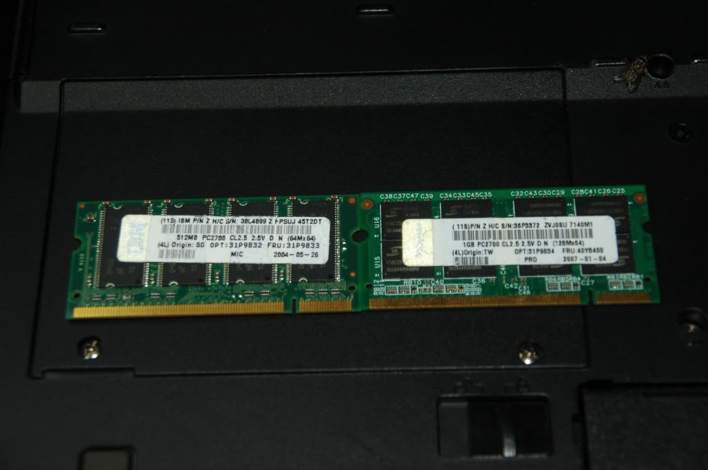 512MB RAM..... upgraded to 1.5 Gig (1 x 1 Gig, 1 x 512, both IBM/Lenovo branded)