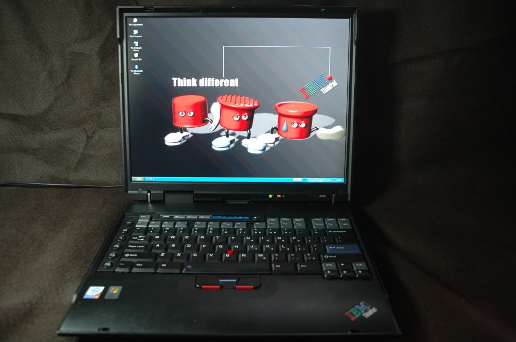 Spec’d to a top-of the-line A31p model. The plastics are almost immaculate – one small scratch on the base, and a few tiny marks on the lid. New palmrest. No shiny keys on the new keyboard. And of course, an absolutely stunningly crisp and sharp 1600 x 1200 UXGA-IPS Flexview display. The whites on this screen are a brilliant pure white. I usually run my displays at full brightness… on this one I’ve had to turn it down a notch. Excellent , even illumination across the whole display. Just the best high-rez screen I’ve come across in some time!