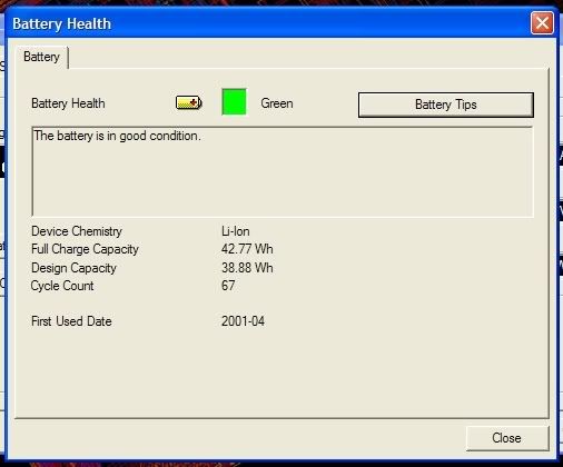 The battery new was originally rated at 38.88Wh according to the battery information screen. It now reads 42.77Wh, and estimates the TP will run for about 4.5 hours. Much better than the 5 minutes I was getting.