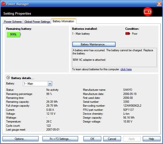Screen Shot of the Bad Batt. at Power Manager: