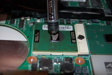 as you seen the compound is very thick, it took me almost 10 mins to get it rid off the heat sink. by the way the compound that IBM used is black color, looks very close to silver 5.