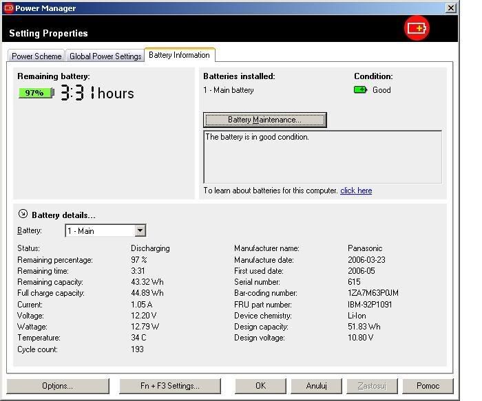 Well in all honesty, i haven't had it for 2yrs. I got the battery from MD_Lieber and he said he normally uses 9 Cell batteries. He only used the 6 Cell sparingly during trips when he wanted to keep the weight down. When i got it from him it had 10 cycles but it was still at 50.10wH so i've only used .05 Whrs since i've got it even tho i've slapped on 10 cycles in about 1 1/2 months now. Normally it's used on AC adapter. Bought a AC adapter from him also to use at work and leave another at home (less weight to travel with) but sometimes i had the battery go all the way down while i was at Starbucks and places like that. I have my Power Manager app set to start charging when below 86% and stop at 96% also so not to put too much wear on the battery constantly charging it to 100%.casperkid wrote:Amazing, you have 2-year battery with only 20 cycles and almost 98% capacity.