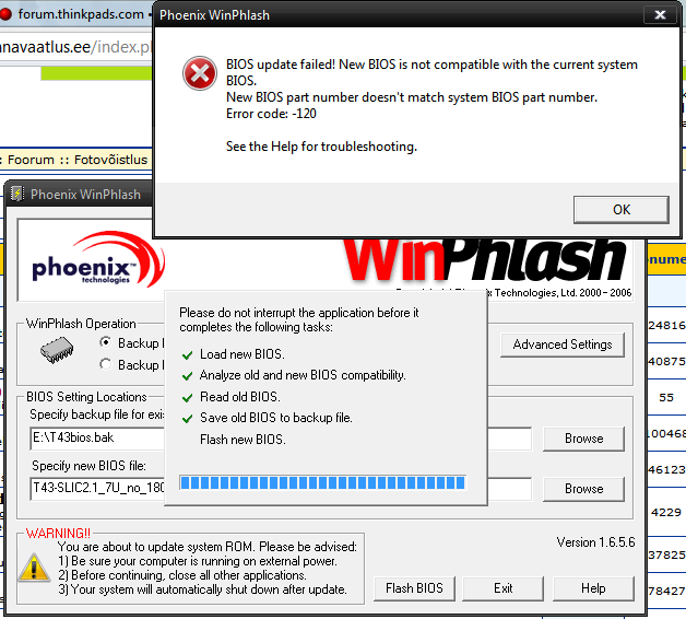 When tried to install it to my T43, I got error message: BIOS update failed. New BIOS is not compatible with your current system BIOS.