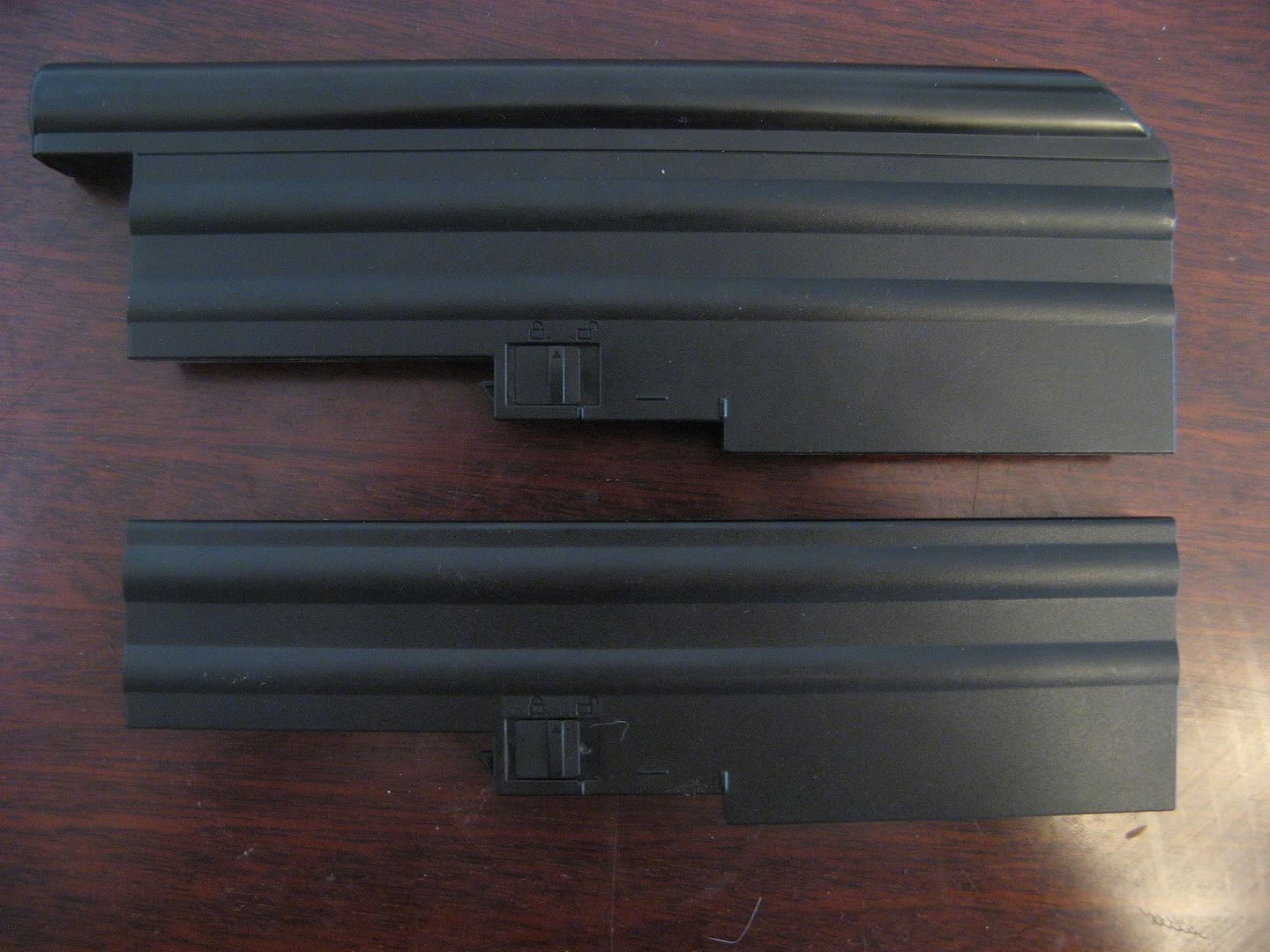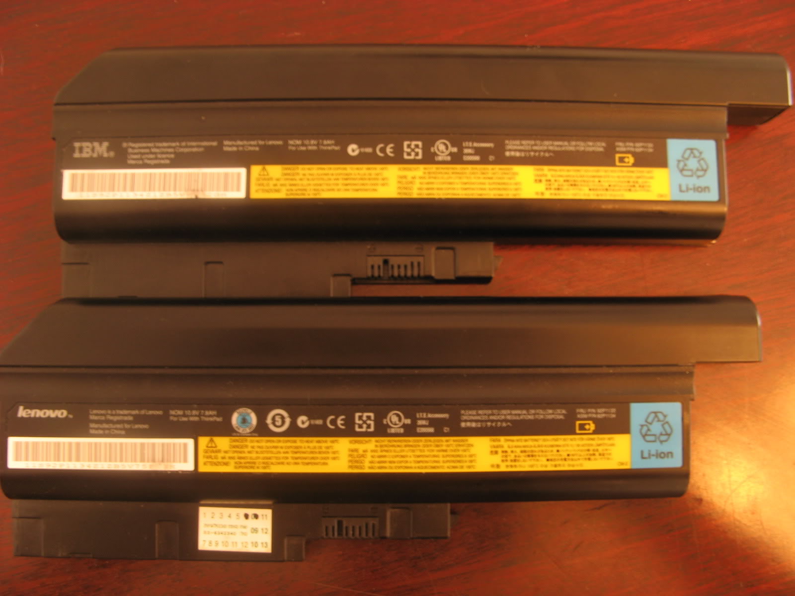Comparison pictures of the batteries are below. The left pic shows the 9-cell versus the 6-cell. Surprisingly it is not a beast at all, it protrudes less from the back than the extended batteries of the 14" widescreen models. The right pic shows an older, IBM-branded 9-cell and a newer, Lenovo-branded one. Both batteries are Panasonic, BTW, with same FRU, but different branding. Note that these T60 batteries also fit all of Lenovo's 15.4" widescreen models (T/R/Z/W) and the SL-series (SL300/SL400/SL500), but not any of the 14.1" widescreens.