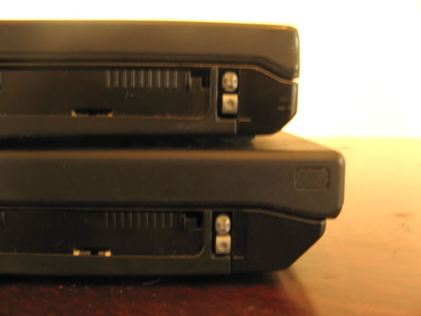 This is the back of the laptops, with the 9-cell batteries. The right edge of this protruding battery sits plush with the right side of the 14" laptop, but not with the 15".