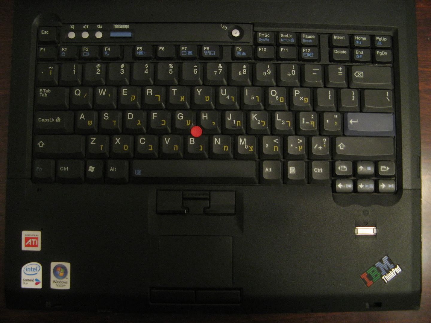The 2007-QPG, being a dedicated graphics model has the ATI sticker, whereas the 1952-F76 doesn't. Both have the Centrino Duo sticker, due to the Intel WiFi card (Atheros-equipped Thinkpads don't have this sticker).