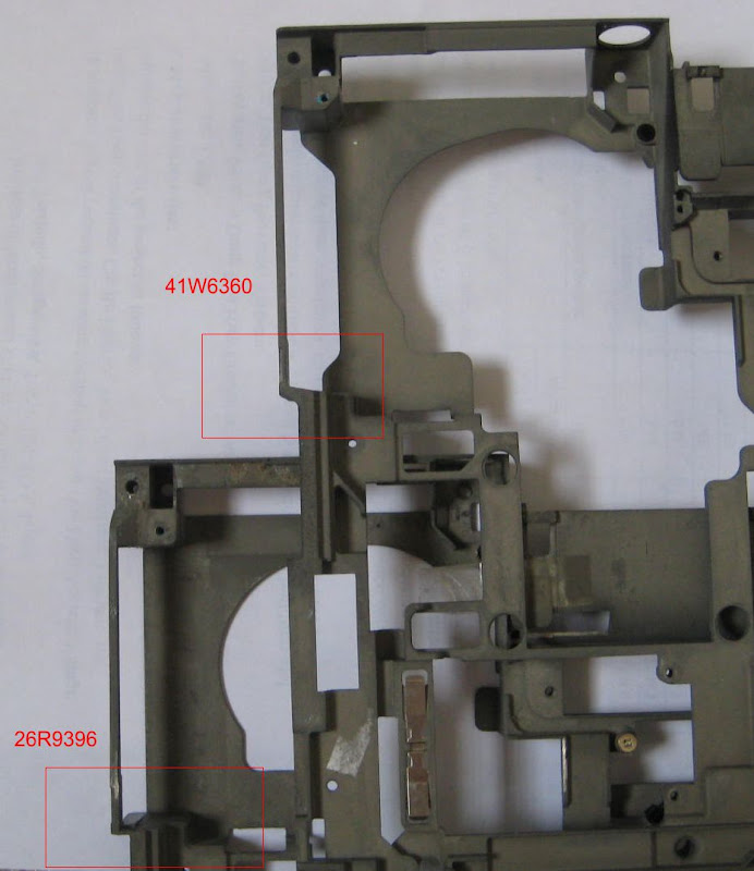 Here are pictures for comparing old (26R9396) and new (41W6360) structure frame for 15" 4:3 T60: