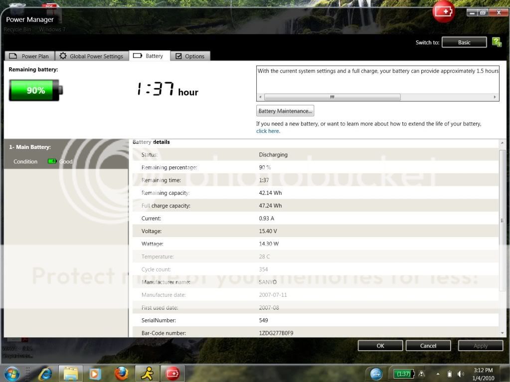 I am waiting to see if lenovo will do the right thing, but eventually I will open it up and test the cells. If I find a bad cell and manage to do this without gak-ing up the case, I may just replace the cells so I have a second battery. I must state if you intend to replace your own cells, you must use all new matched cells or you WILL have a bad day. If I don't find a bad cell, I will consider this a failure on Lenovo's part and I may not ever buy another machine from them. If I could have confirmed for a fact this was their fault, I would have canceled my W700 order and waited for the i7 multi touch mac to be released. I am a huge thinkpad fan, but I'm not going to put up with being screwed over. The fact is as far as I can tell there is nothing else out there in the PC world that competes with the quality except the Macbook Pro, which has a one piece aluminum case, how cool is that? If they had a decent Keyboard, and a trackpoint instead of that stupid touchpad, I would have jumped ship when I saw how bad the T61 was. I figured that was the end of the Thinkpad brand. Fact is I got the W700 because of the trackpad, and the positive reviews of the screen HERE. I figured the wacom tablet would come in handy, and it already has changed my computing life. The trackpad is turned off. I've also started getting used to having a number pad again. BUT.....THIS THING IS HUGE AND HEAVY!!! I don't plan to EVER use it on battery except as a UPS. The battery currently shows 3 cycles and they were there when I got it. I've had it since November. Unfortunately the design capacity is 84WH and the full charge capacity is 80.5WH The battery is over a year old. Not impressed! But like I said I'll never use the battery. If it will last 10 minutes in 4-5 years from now, I'll feel like I have had a good run even though it will have had very few cycles by then.