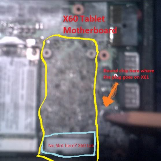 Hello everyone, I'm not a newbie but my old reg info was from Iceland and I cannot remember what email I used? the X61 screen has 3 wires going to the wireless/video/whatever card, the X60 has 2? I'm switching cards but there is a three wire connector that runs along the right side to almost the front and plugs into the motherboard, the wire colors are BLACK, BROWN & RED on a small plug that would accept 4 wires, it has a Intel chip next to it maybe an inch and a quarter by 2 with 3 black chips, the socket its plugged into is identicle to the one next to it, the part # is 08083N. on the X60 the slot next to where its missing is # 64NRA