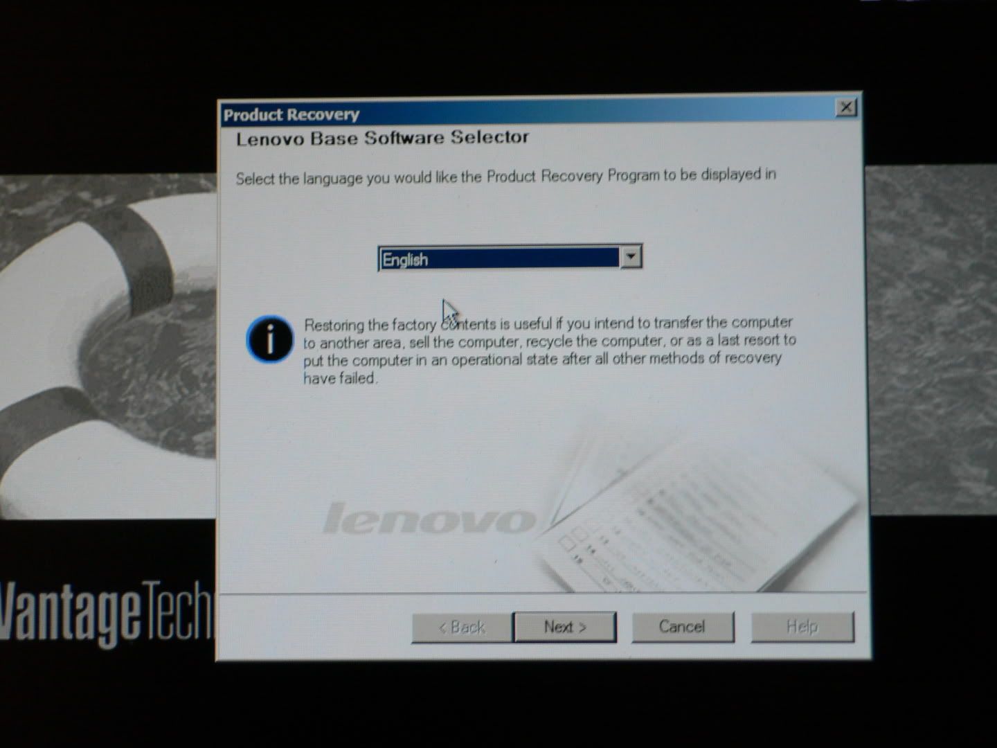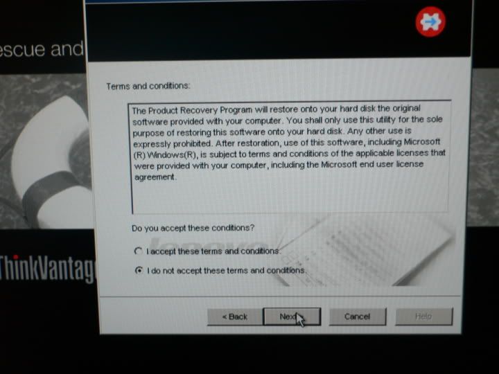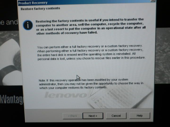 -To make things easier, I took some pictures of the running process (Recovery disks made under Rescue and Recovery 4.0 for Windows Vista):