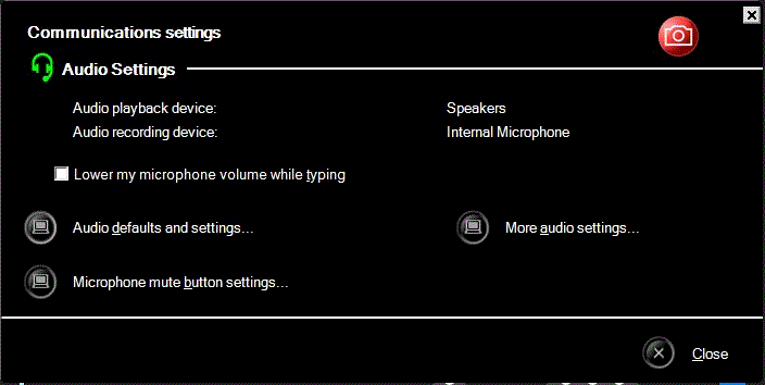 Here's the problem, when I press Fn+F6 I have this screen: http://screenshotuploader.com/i/1407/ok8ns.png and I have no "Audio defaults and settings", only that Microphone settings spot there. Also when I go to "Manage Settings", there are only Camera and VOIP Call settings pages. Before pressing Fn+F6 I had done everything like you had done.rkawakami wrote:Okay, here's what I did to get audio to play through the DisplayPort on my T410:
