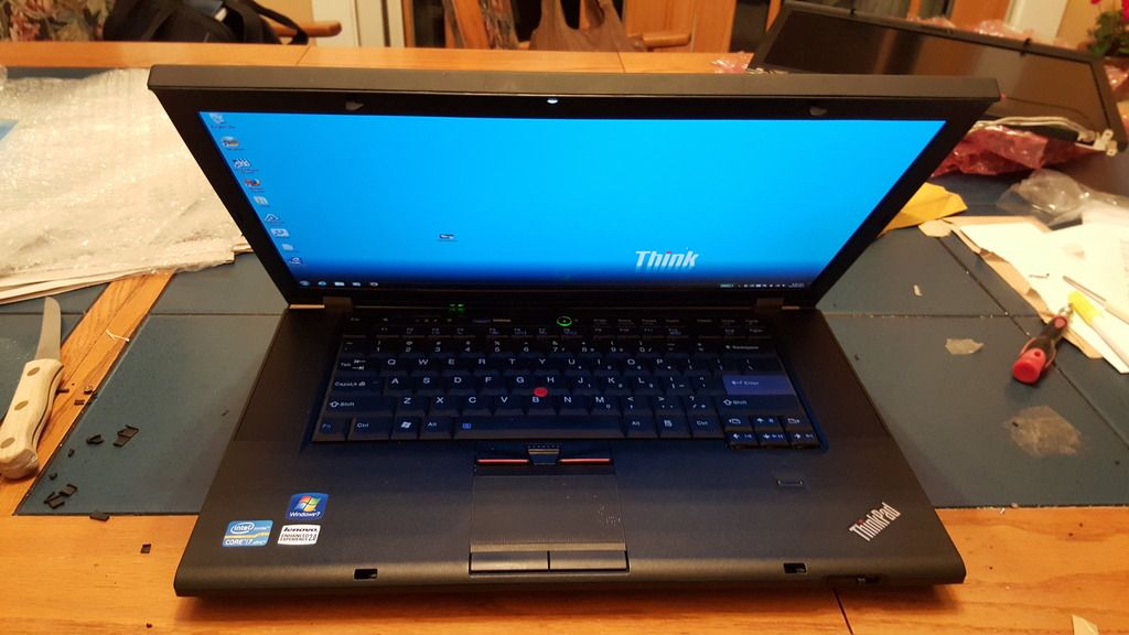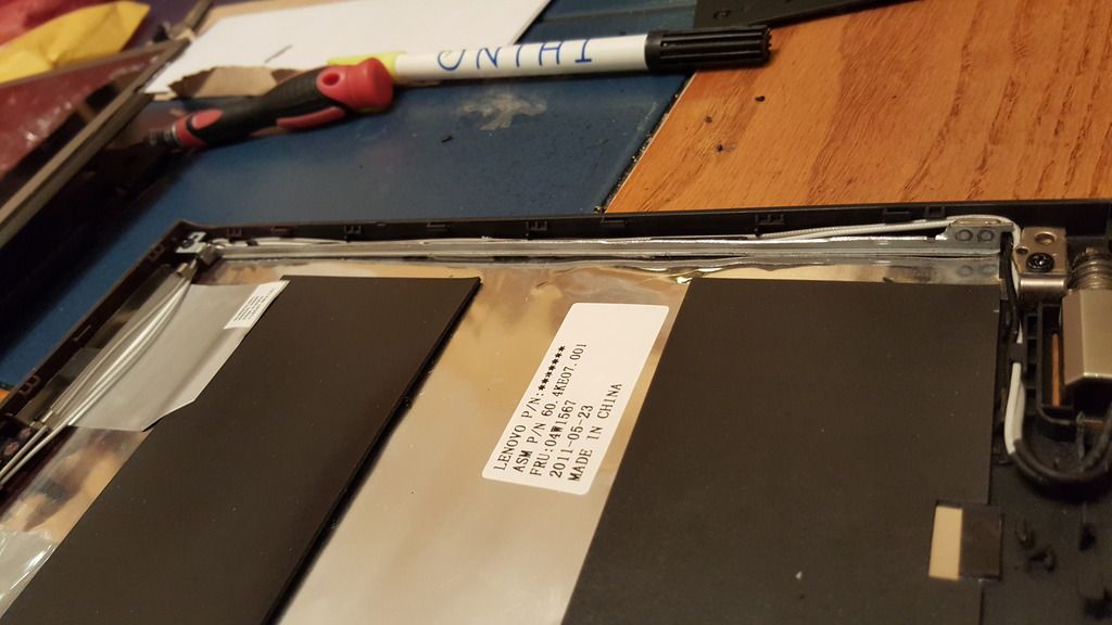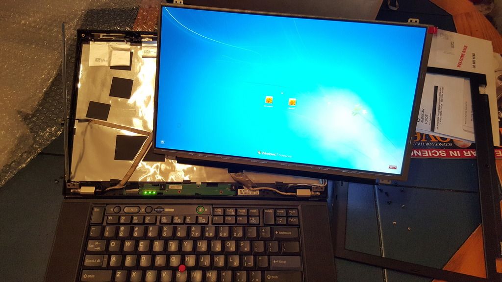 I'd keep this screen if I had a spare T520 or W520 LCD top cover/LED card and set of hinges/screen mounting arms to experiment on. But since I don't... I think I'll have to shelf this dream for now, or at least until I can acquire a cheap top cover to experiment with. I've not totally given up yet, so stay tuned (or share some ideas