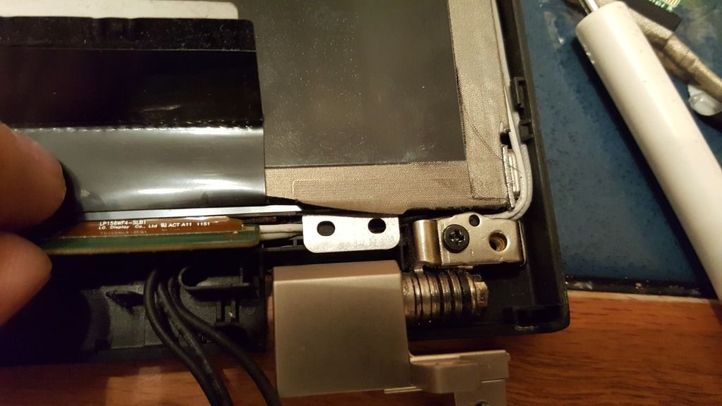 Once you've secured the LCD to the lid, route the cable out the right hinge, put the LCD bezel back on, reinstall... and enjoy!!