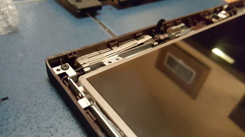 I had some extra time to think about the problems last night. I don't think I'll go straight in to cutting the bezel; I might first try to get my hands on a spare hinge to modify. Since the screen is about 2.5mm thinner than the original, I was thinking I could either heat and fold under or cut then reinforce the right hinge arm so the screen can pass over the top of it. I do have a brazing torch and have (potentially) the skill to cut the top portion of the hinge arm off then braze it to the bottom portion to ensure strength remains. Then I could nudge the screen to the right a little.