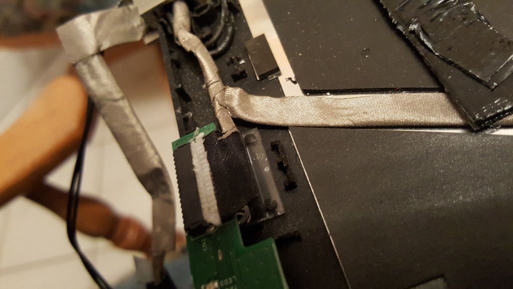 Now get the LCD extension cable and connect then affix it with tape so that you have something that looks similar to this: