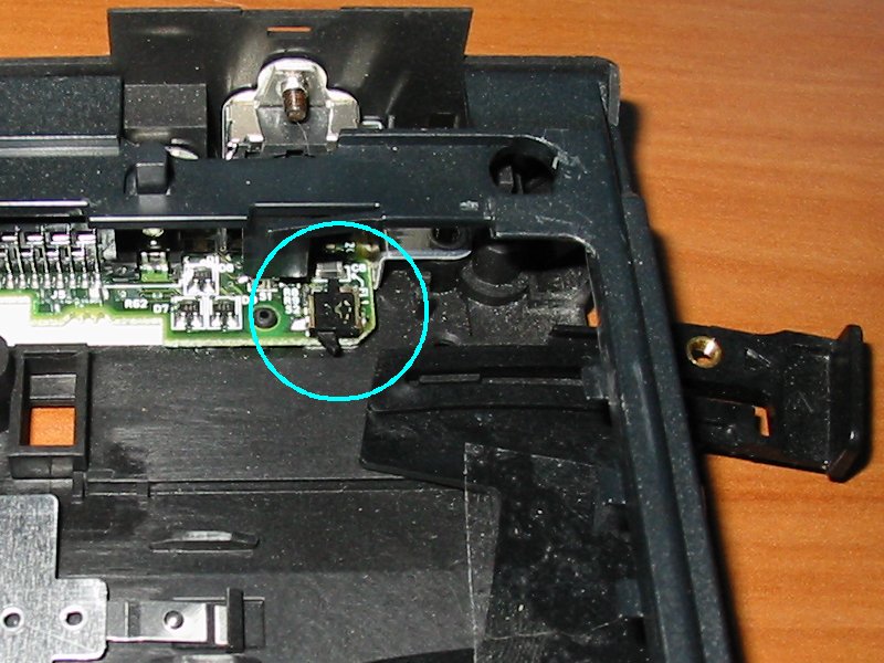 Ray is correct. This switch is mounted on the MB near the right side lower edge. Just below the TI PCMCIA controller and card cage.
