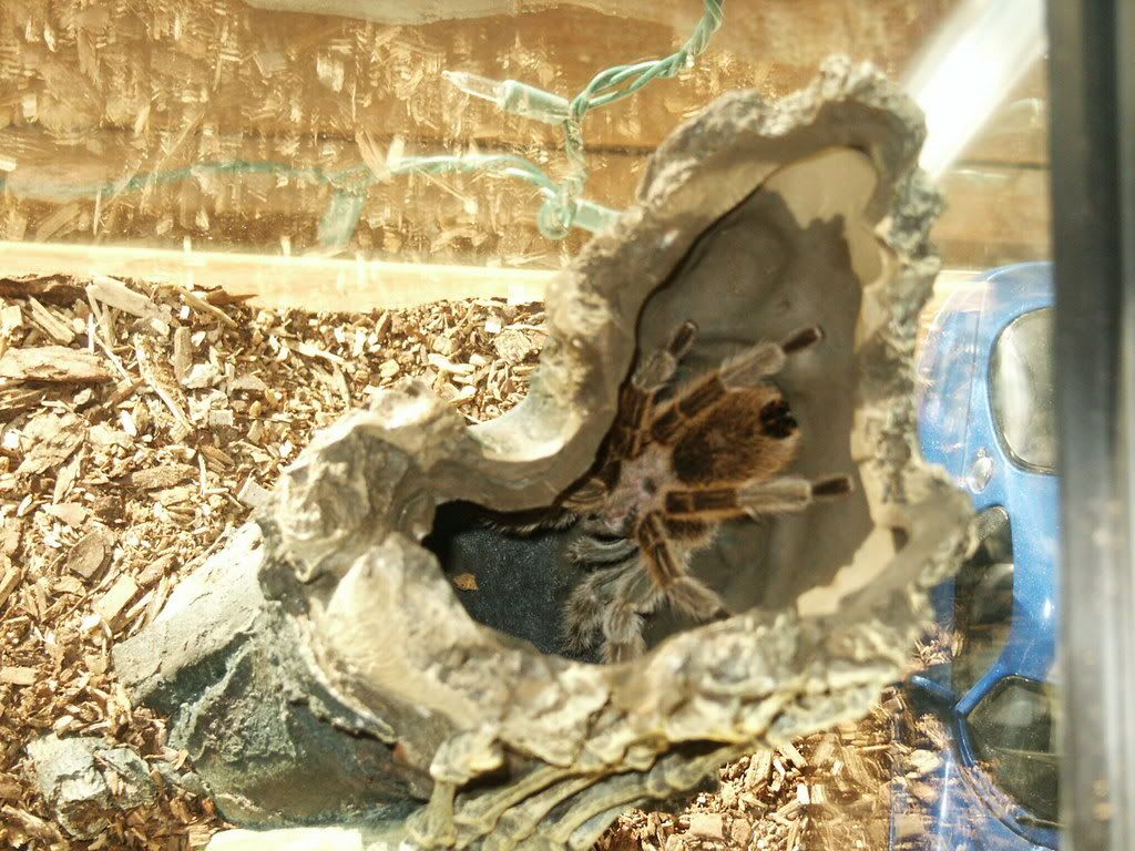 Yes, they are very cool. All you basically have to do is feed it a cricket or two a week, which are $0.08 a piece at any pet store. Cheaper than a dog! Check out Arachnoboards, its the best.Temetka wrote:I'd love to get a tarantula. They are really cool. However I do believe my wife would harm the little guy while I was off at work. So I will sit here and wait for more people to post pics, as it seems that is the closest I will ever come to owning one.