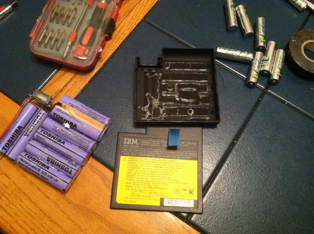 I soldered them together in series in the same pattern the original cells were spot welded together by lightly scuffing the tops of each battery with the tip of a screwdriver to give the solder something to adhere to. I didn't reuse any of the existing stuff from the old cells except for the + and - to the controller, obviously. There was also what appeared to be a thermal sensor which I hot glued between a couple of the inner cells. It doesn't hold a charge for the full 2 hrs the factory battery was supposed to last for, and Windows doesn't report the capacity properly until it's about to die, but I do get about 45-60 minutes out of one full charge.