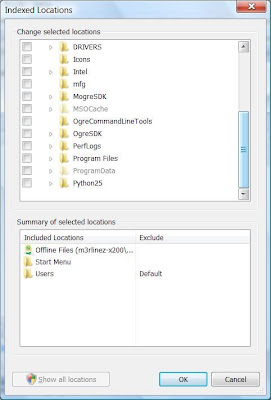 What I want to do is to stop Windows Vista from indexing my "Users" folder so my machine will get faster. I try to disable the "Users" folder indexing by configuring Vista's "Indexing Options" as many sites suggest. But, unfortunately, my "Users" is not shown up and the last folder listed under "C:" drive is "Python25".