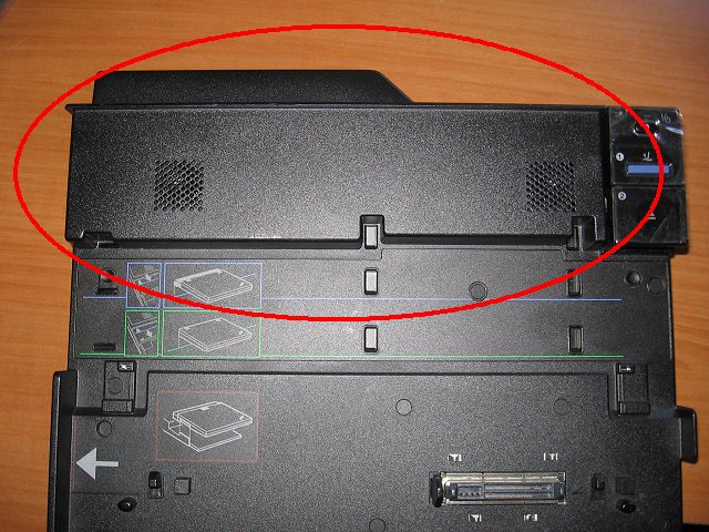 The unit I received was a ThinkPad X4 UltraBase P/N 91P9283; FRU P/N 91P9282. At first sight it appeared to be too small to accommodate the Tablet :roll: but surprisingly it does match up :lol: and dock the Tablet, although it appears quite awkward-there is a gap at the bottom front of the Tablet and the UltraBase of approximately 3/16th of an inch. I assume the non-Tablet X40 and X41's have a slightly smaller footprint and match up to the X4 UltraBase more cleanly.