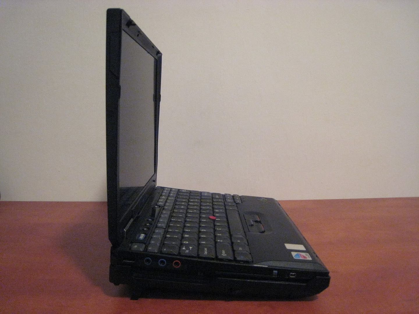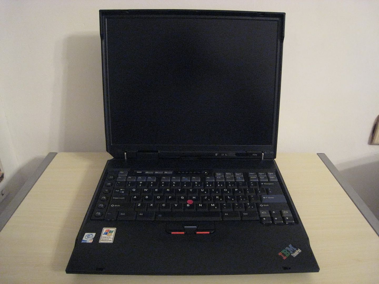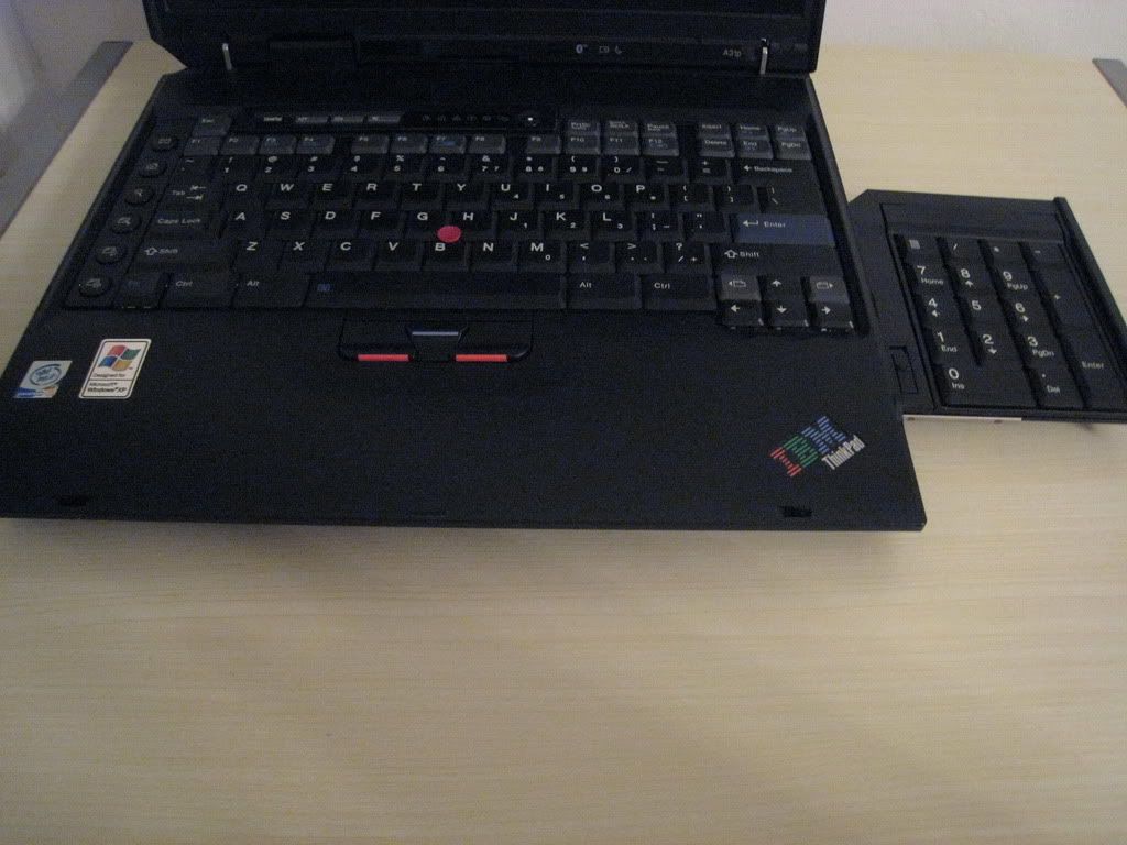 Keyboard and palmrest view. The pre-widescreen X-series keyboard is almost full-sized, but just almost. The right column of keys took the biggest cut with a small backspace and tiny backslash. The relative position of other keys is affected by that, and I still find myself hitting incorrect keys from time to time. It's great that they managed to fit all the keys on the keyboard though, except it comes with one other problem - the bezel around the keyboard is very thin as you can see, and many of them break near the CapsLock or Enter keys (two of the three X32 units and one X31 I've seen had broken bezels).