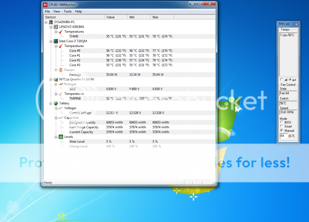 aldimeola81 wrote: I'm not really doing a lot of testing, sometimes playing with some 3D gaming with the fan set to max, and the rest of the time I use the w510 with ubuntu, however, not known high temperatures, indeed ..