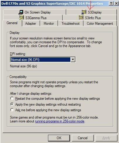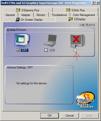According to the "How to enable TV-Out" instructions, there is suppose to be a tab S3Display, where I can select the display device.