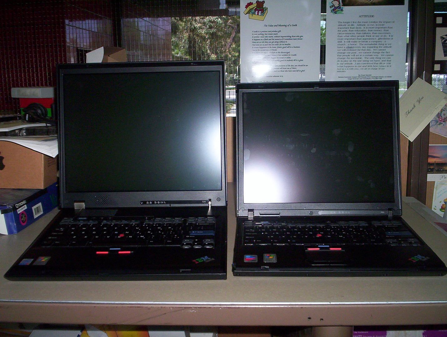 My ThinkPad R51 Steven is my only ThinkPad (and I am planning to get more ThinkPad's). The other computers are not mine (and I wish that I could own them all), they are from school but the T23 belongs to one of my (human) friends from school and the 600 is my cousin's ThinkPad. (And Aaron the ThinkPad R50 is really my boyfriend.)