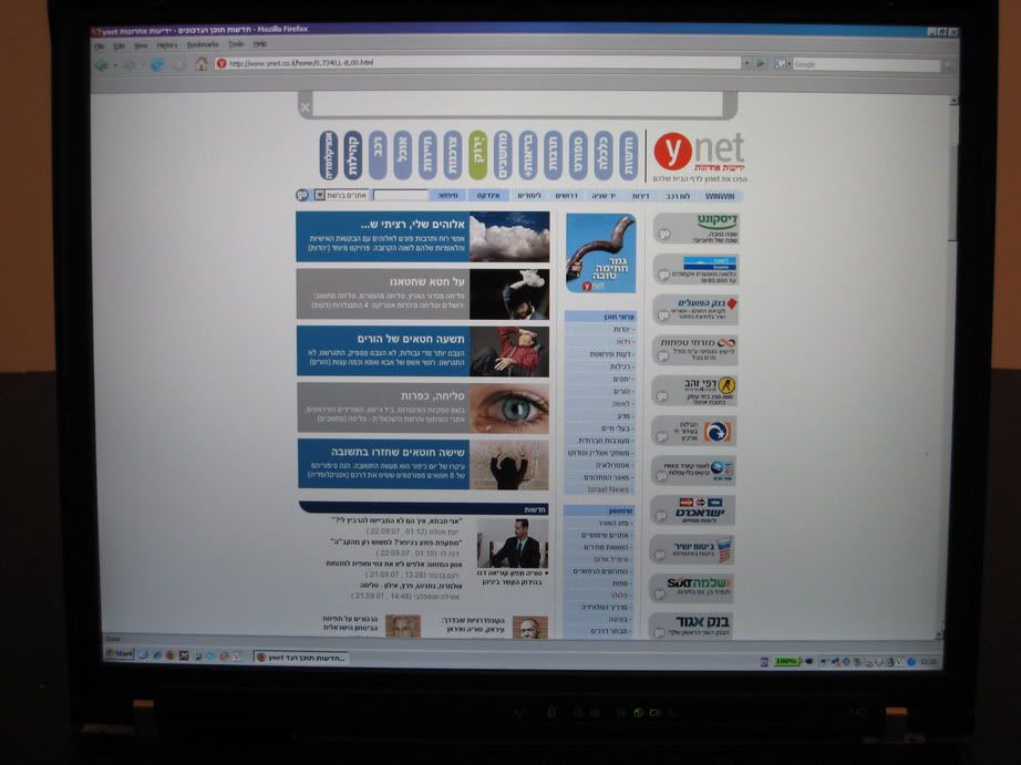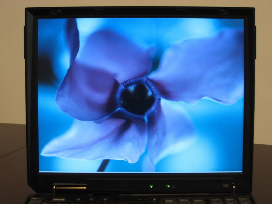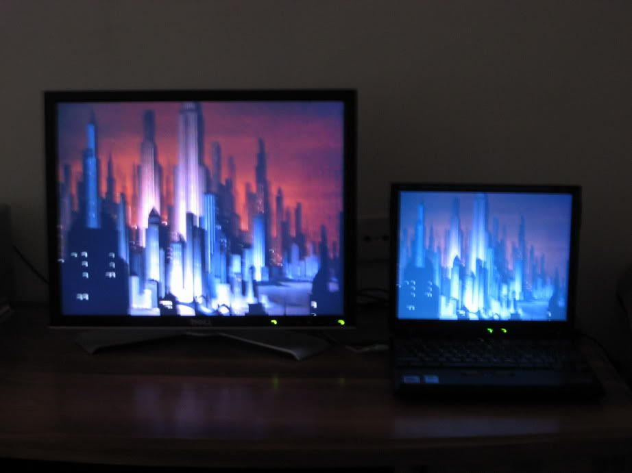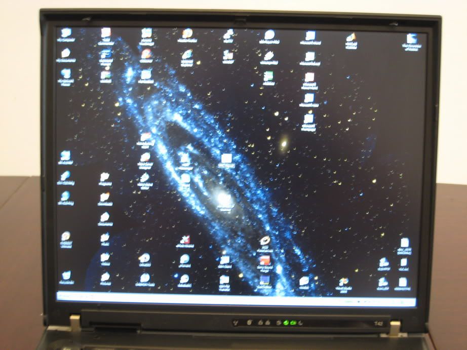An extended desktop setup between the external monitor and the T42 (3080x1050 total resolution):