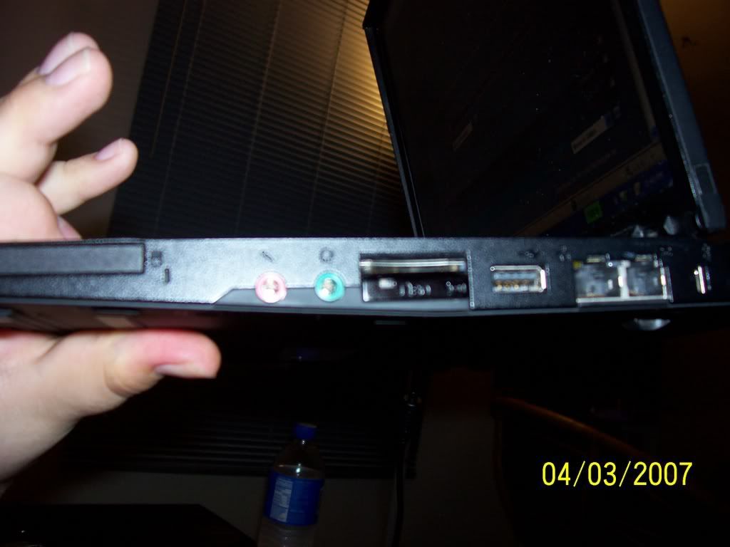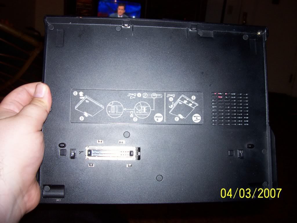 An IBM Thinkpad X40. It's loaded down with 1.25GB in ram, and sports a 1.4 GHz Pentium M. It's got built-in Intel PRO Wireless, thus the Centrino badge it bears. The graphics card is only an Intel Extreme 2, but it does the job (it runs Half-Life and UT 03 at tolerable, but not full settings). The HDD is a 40GB Hitachi TravelStar. The screen is 12 inches, 1024x768 VGA. It weighs less than three pounds by itself...no joke! It's still under warranty until early next year, PM me for the S/N if you want to check the service tag yourself. [Edit: I checked the service tag...warranty's good until effing March of 2008! Six more months of warranty, at your service!]It also has the extended battery, which almost doubles its intended capacity. For serious, on low settings, I can get And that's not all...included is also the media slice, which doubles your available USB, while adding VGA-out, PS/2, parallel, and even a serial ports (as if you'll need it anywhere besides using your old controllers or talking to your server). It also has a CD/DVD combo drive on it (which can be swapped out for an Ultrabay device such as a DVD-RW drive, second HDD, or additional battery).