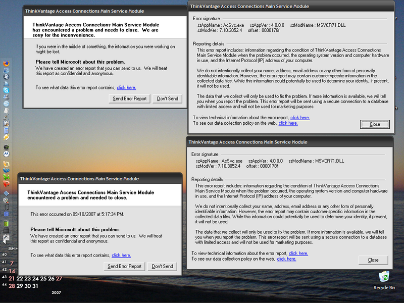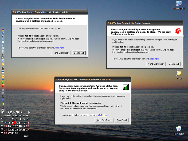 Update Thinkvantage Productivity Center and Access Connections to the latest version.