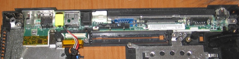 That makes sense. Thanks.rkawakami wrote:There's a thin board which runs the length of the back panel. It's called the I/O board simply because all of the ports (except audio and infrared) that are mounted on it. That I/O board plugs into the motherboard through a small, thin connector. There is another connector that the ribbon cable going into the MiniPCI bay plugs into.