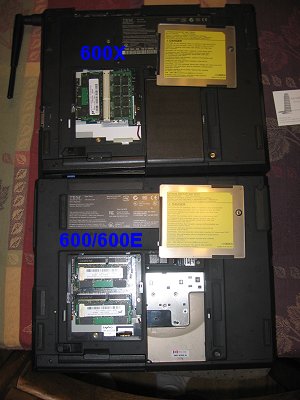 - 600/600E does not have the MiniPCI slot so there's no access to it from the bottom of the base; the 600X does have the MiniPCI hatch