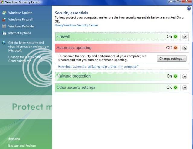 Is there anyone who has an answer for this? My cousin has a computer that is running Windows Vista and for some reason I cannot get the security settings to work right! The computer has only one primary account under her name. It is an administrative account and as I mentioned there are no other accounts on it. I was asked to work on it b/c a black dos box keeps popping up. It pops up for a split second and then disappears. I've managed to see what it is and it is an wuauclt.exe. I've read that it has to do with updates.